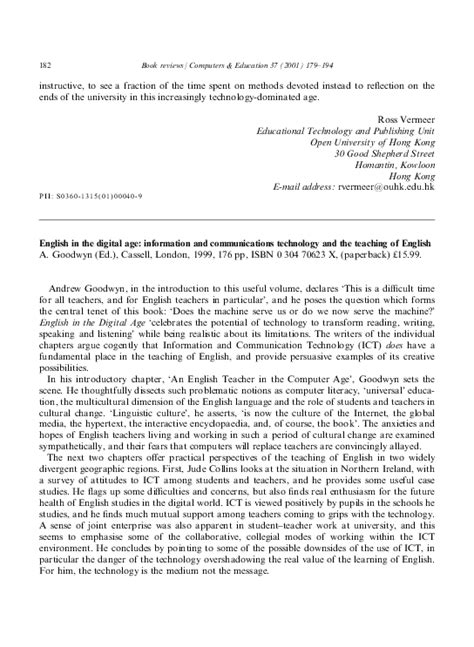 English in the Digital Age: Information and Communications Technology (Ict) and the Teaching of Eng PDF By Click Button. English in the Digital Age: Information and Communications Technology (Ict) and the Teaching of Eng it’s easy to recommend a new book category such as Novel, journal, comic, magazin, ect. You see it and you just know that the designer is also an author and understands the challenges involved with having a good book. You can easy klick for detailing book and you can read it online, even you can download it